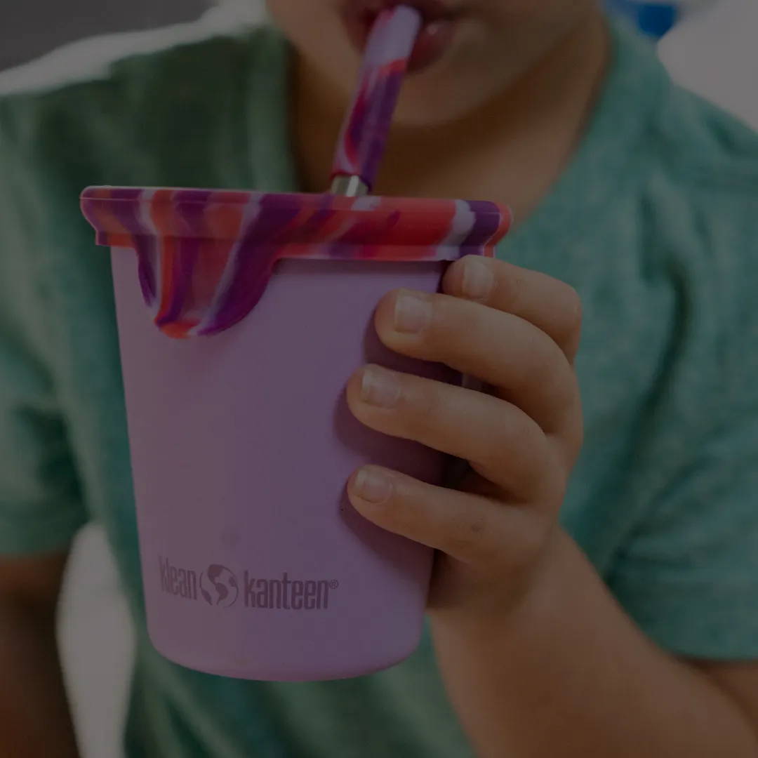 Los vasos Kid Cup vienen con una tapa a prueba de salpicaduras con una pajita reutilizable a juego. Para los más pequeños, también hemos diseñado una tapa Sippy compatible que convierte rápidamente el vaso Kid Cup de 10 oz en un vaso para sorber sin salpicaduras. Los más pequeños pueden empezar con la Tapa Sippy de boquilla blanda y seguir con la Tapa Pajita reutilizable.